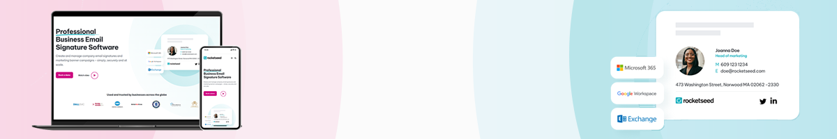 We’ve created a cleaner, more modern look that better represents the Rocketseed brand. In addition to new email signature examples and easier-to-read text, you’ll notice some new graphic elements, including the background circles (Rocketseed ‘roundels’!) reflecting the centralised control and targeting capabilities you get with Rocketseed!